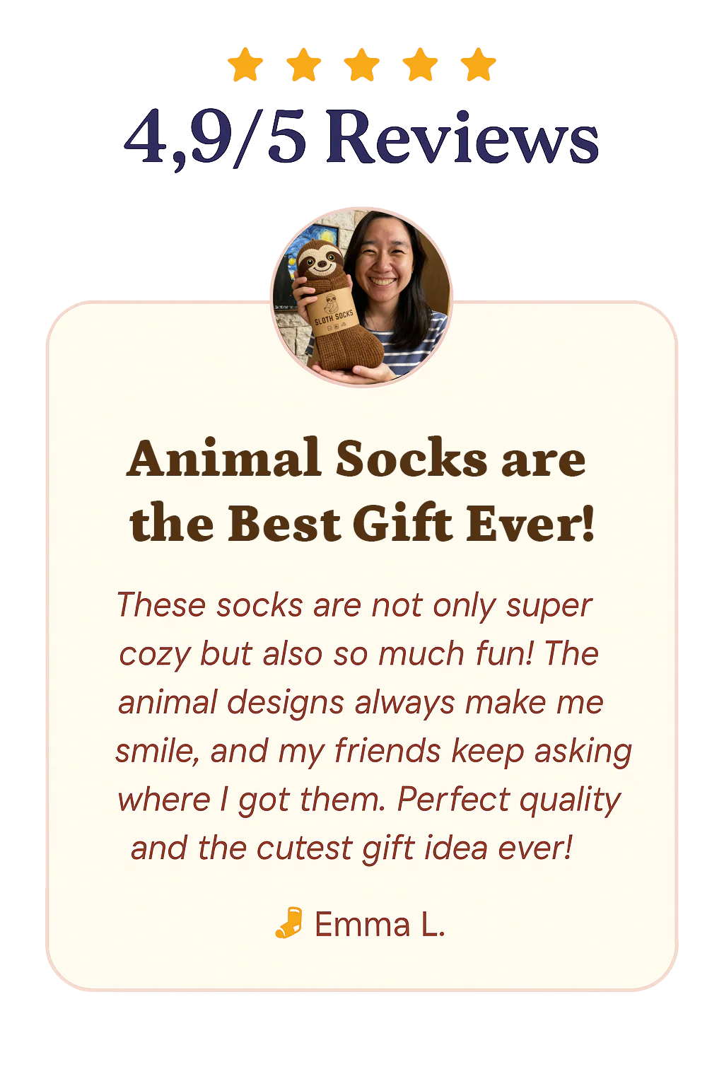 These socks are the comfiest I’ve ever owned, and the animal design makes me smile every time I put them on.